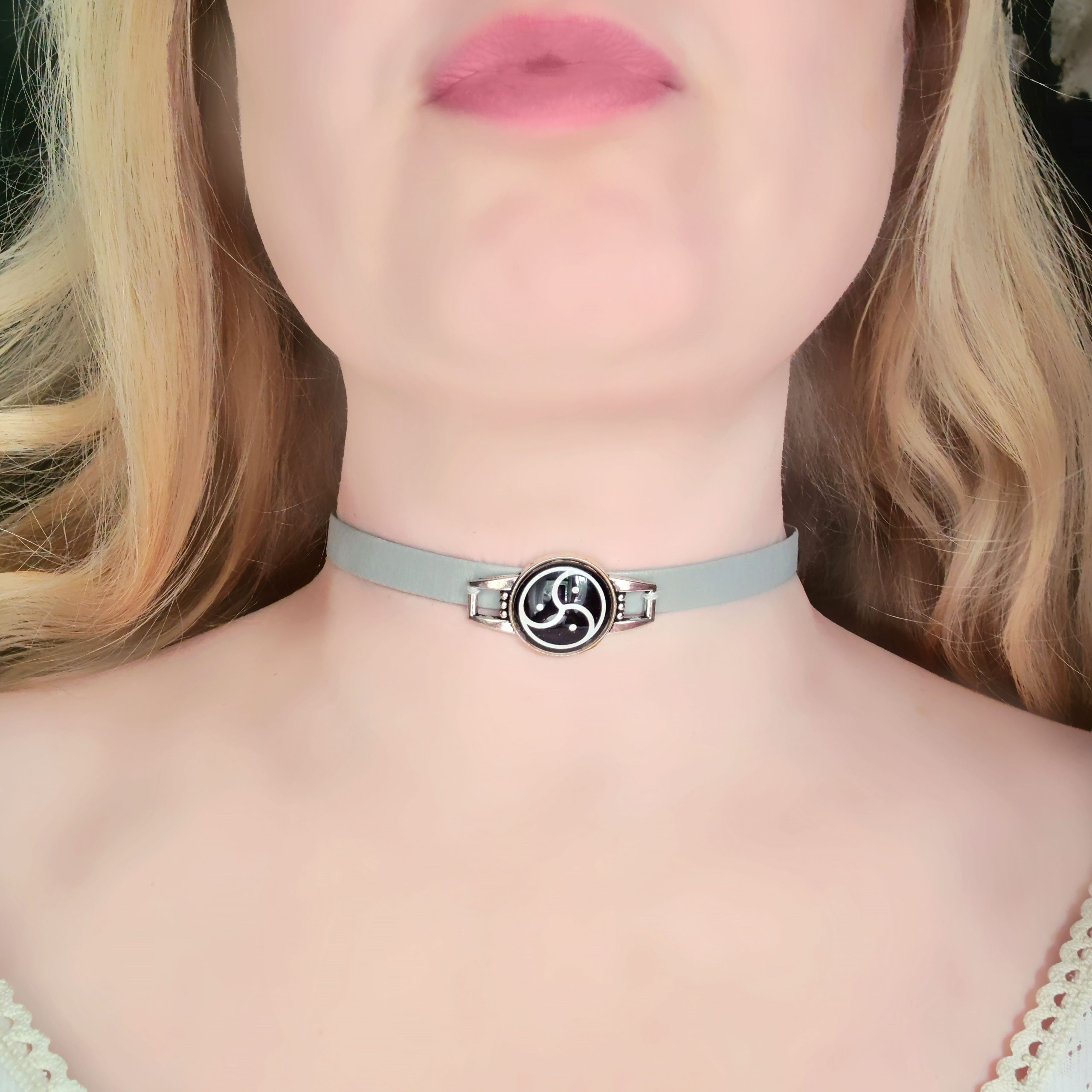 Steampunk BDSM collar with a triskele.